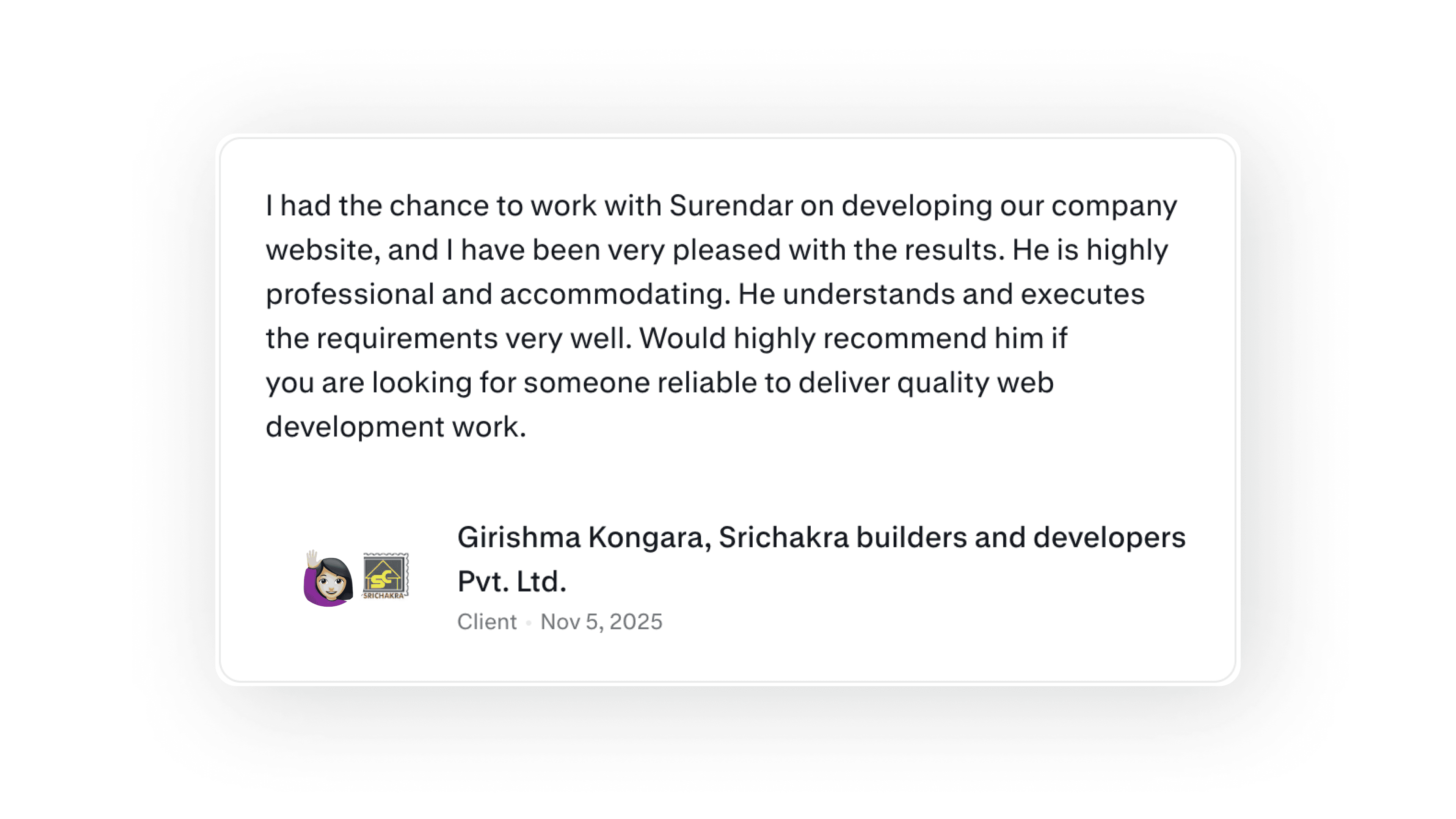 Hello! I am Surendar a Engineer slash designer interested in making Beautiful UI's. Specialist at Crafting digital experiences that matter.